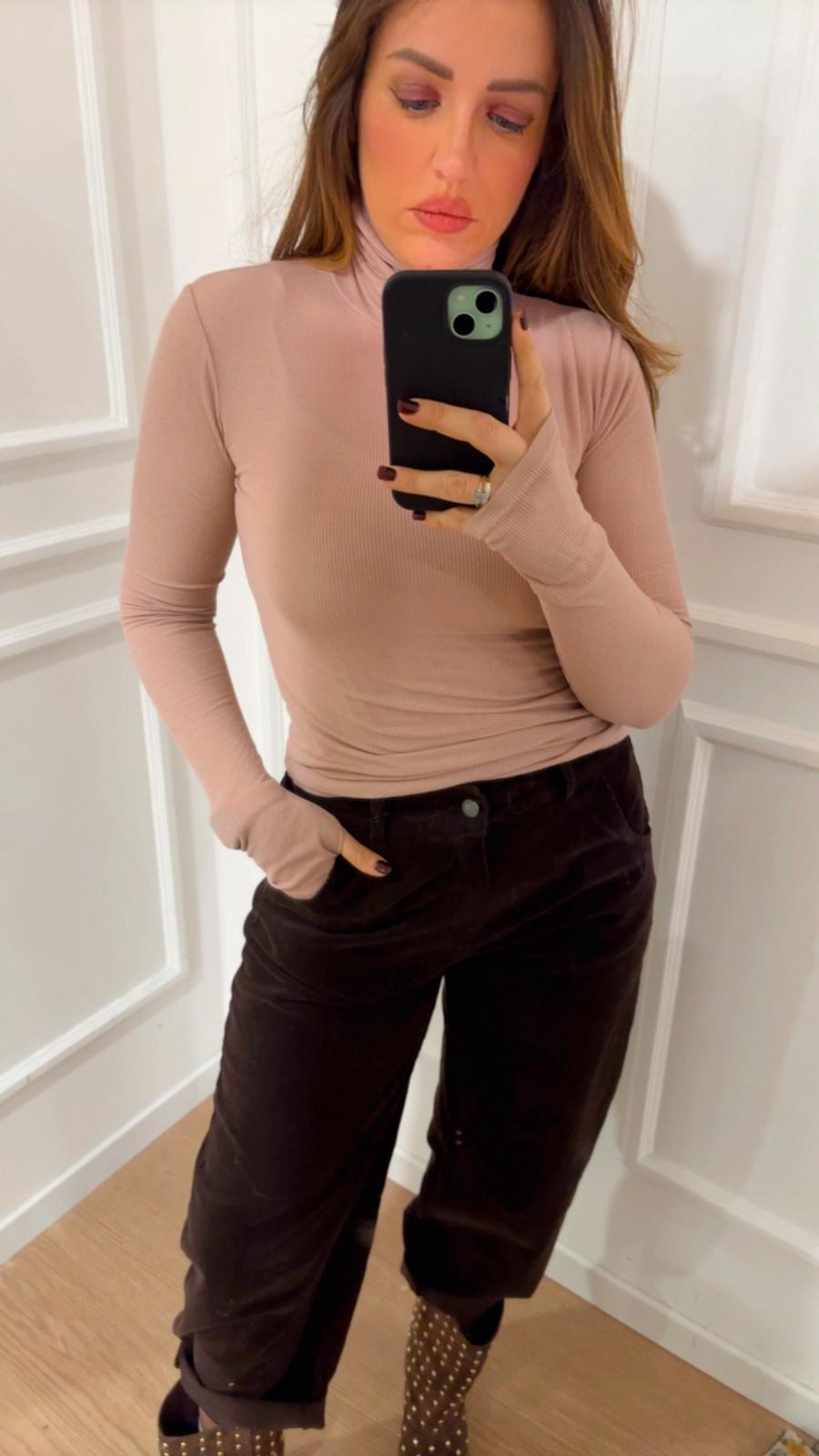 Dolcevita a coste Tensione In 11012 cipria con buco per il pollice