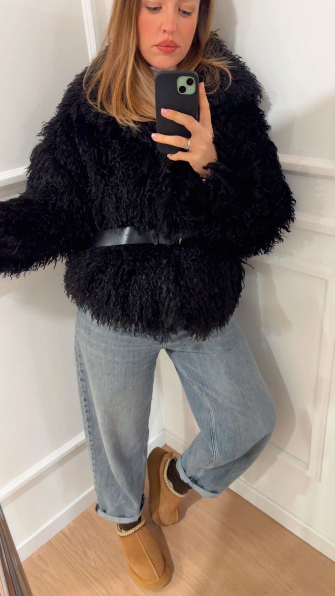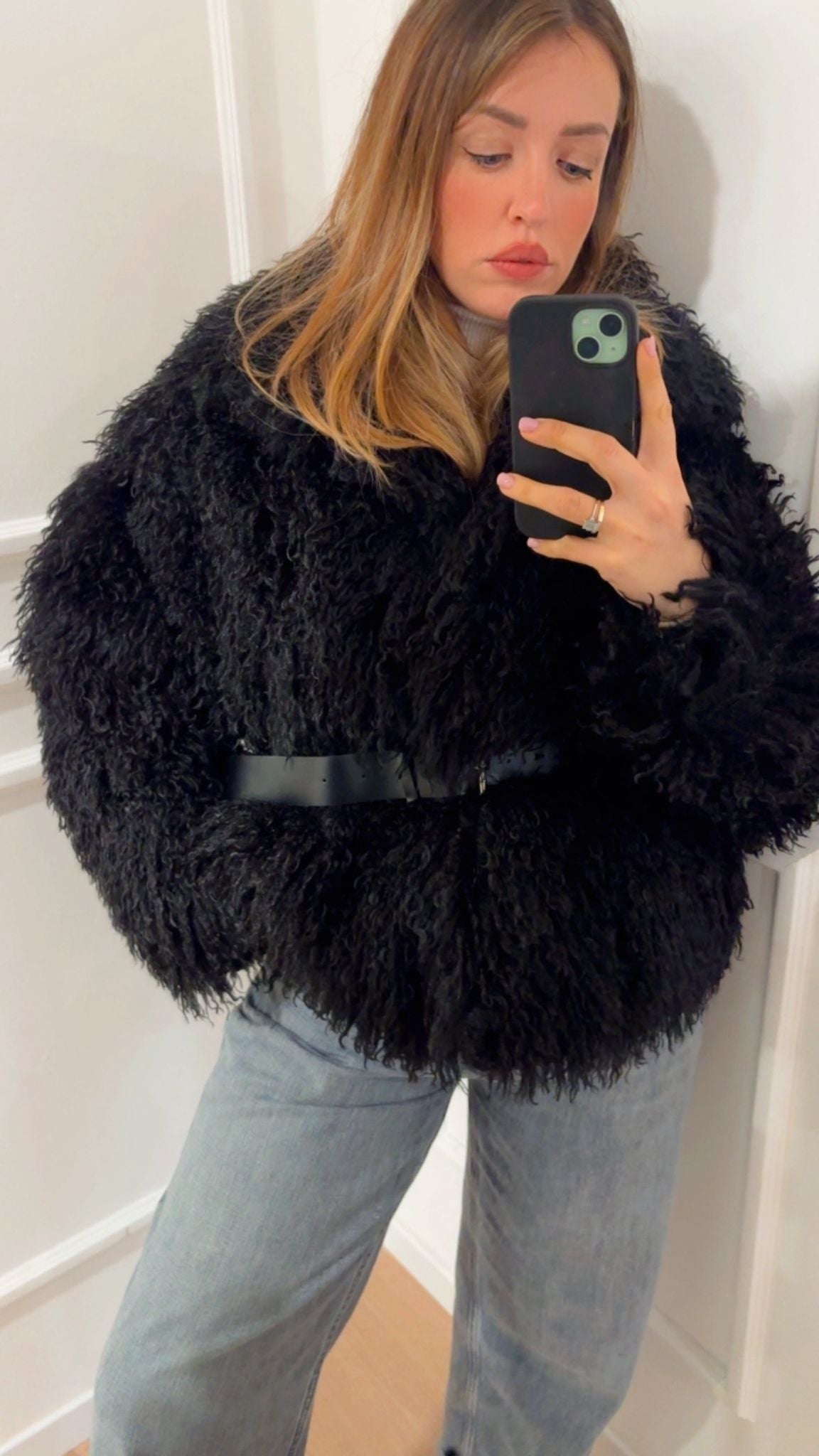 Pellicciotto con cintura Vicolo TF2308 Nero