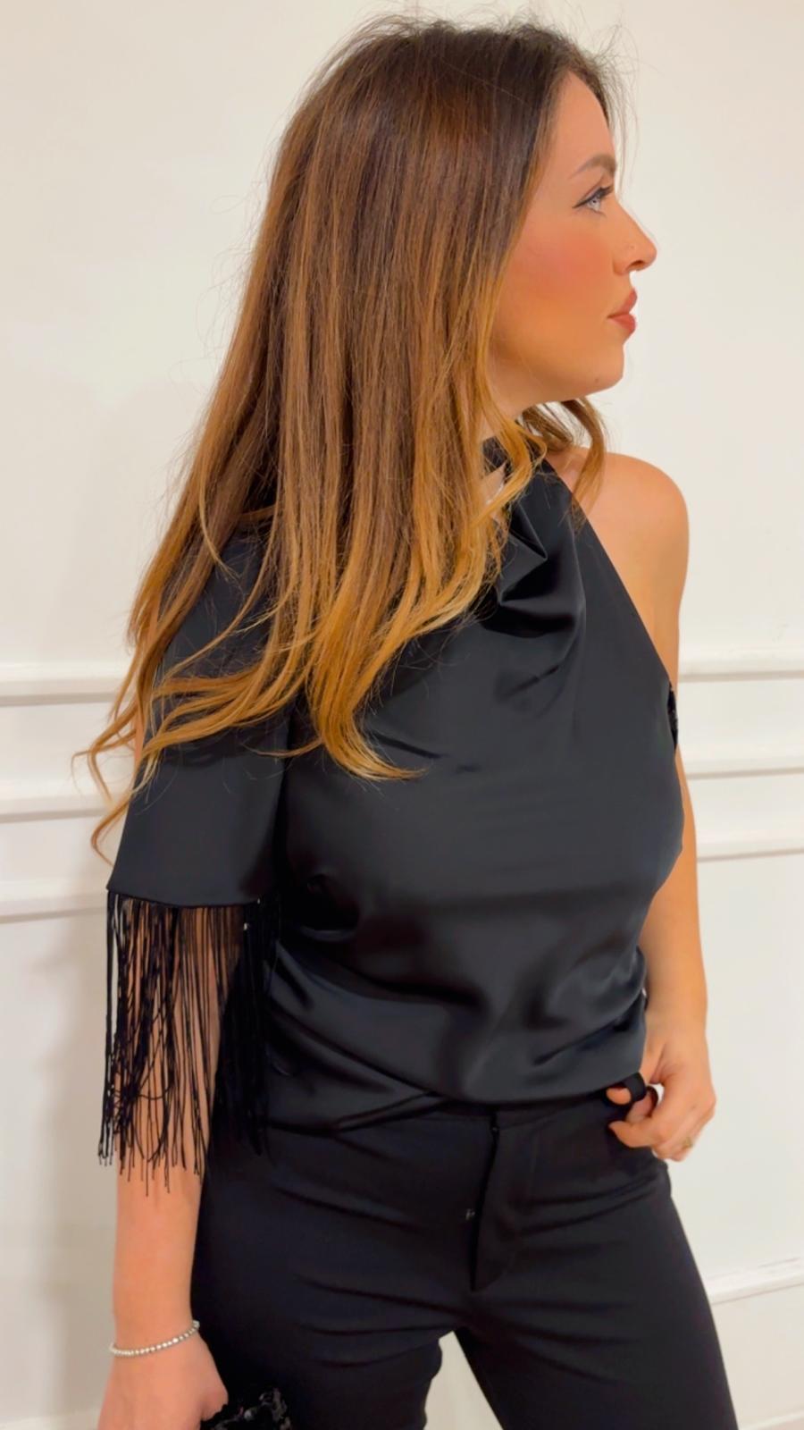 Top raso con frange Le Streghe A25DD003 nero