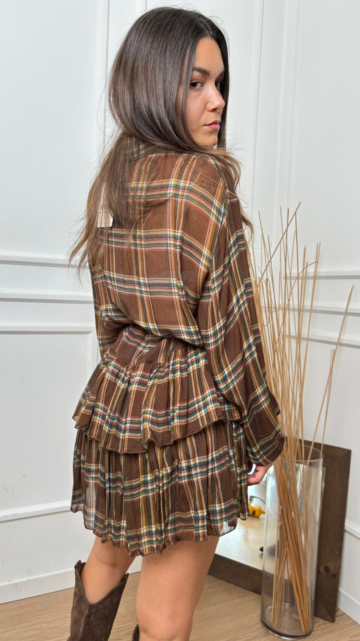 Abito a quadri con balze Dixie A067Y045 con colletto classico, abbottonatura sul davanti e maniche lunghe.