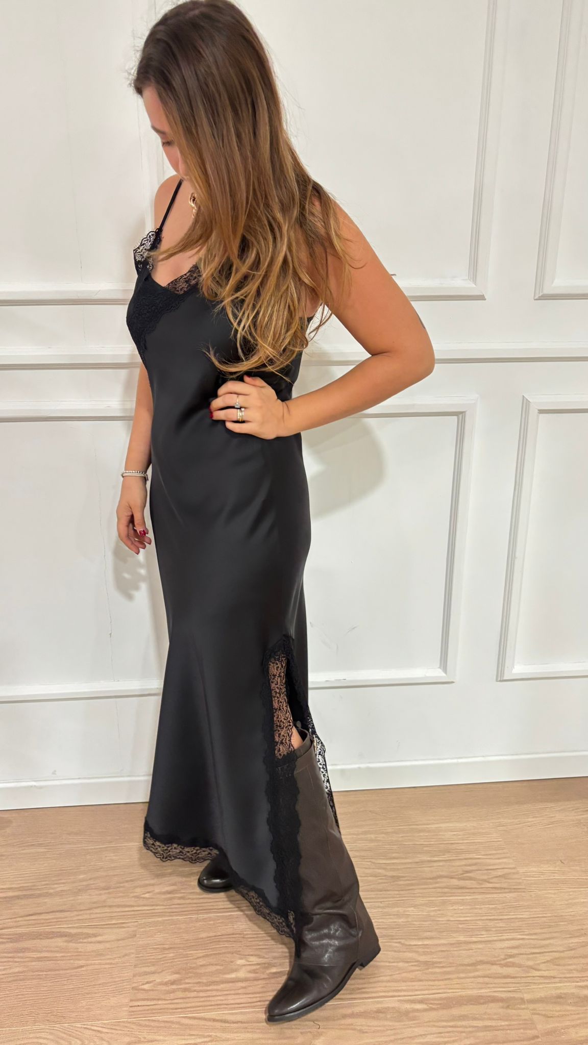Abito sottoveste Imperial AFVTKBA nero con inserti in pizzo