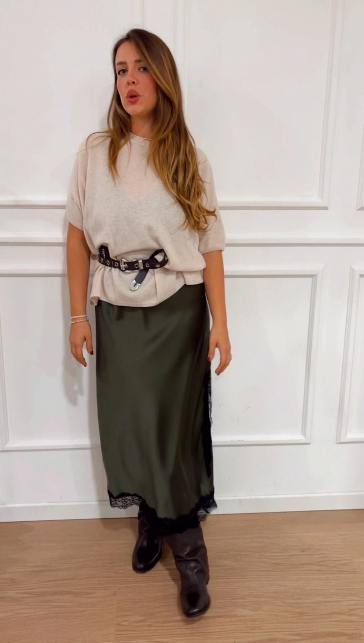 Abito sottoveste Imperial AFVTKBA verde con inserti in pizzo