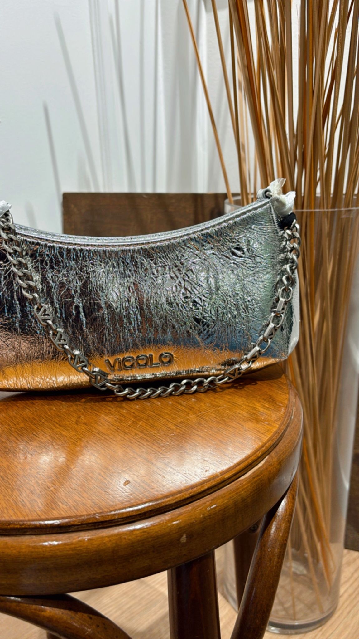 Bag mini mirror XF0009 Vicolo argento con catenina dorata e zip