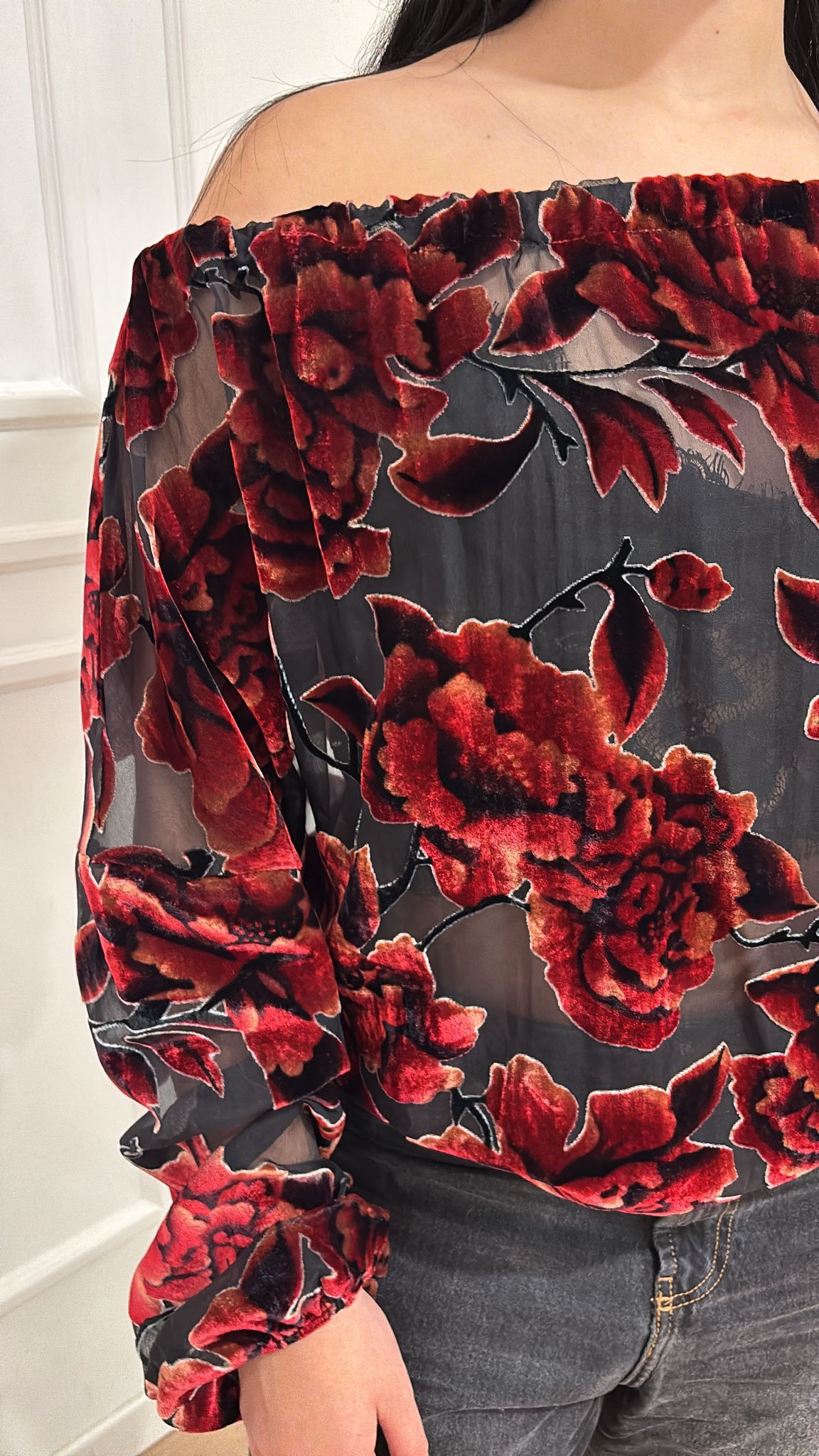 Blusa scollo a barca Le Streghe A25DL109 con elastico nel polso.