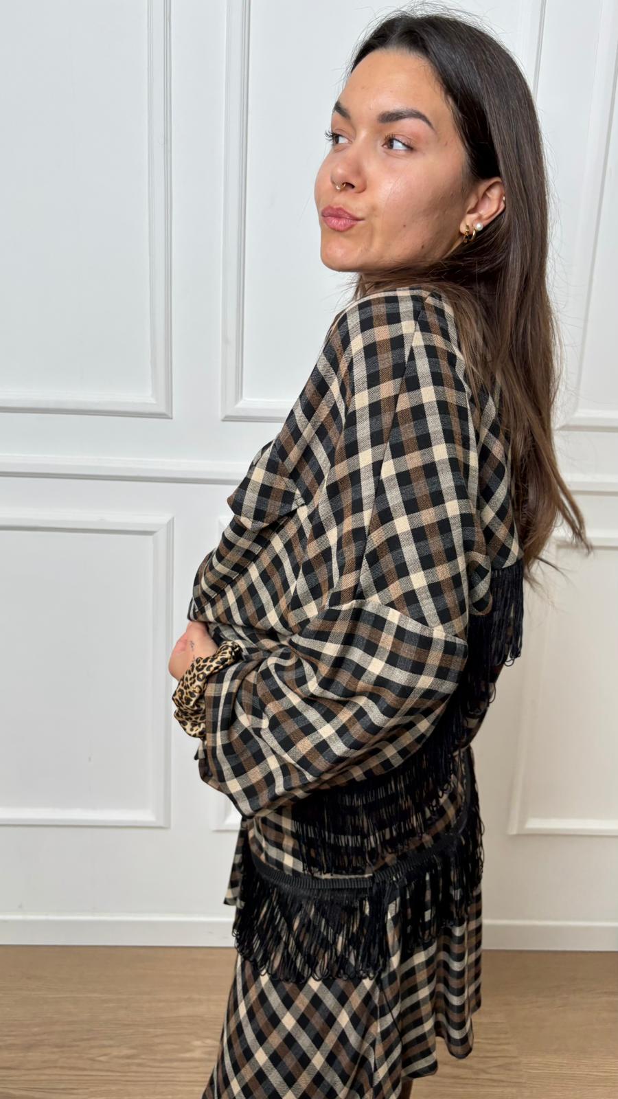 Camicia quadri e frange Dixie CFIFYLB con colletto, frange sul retro, tasche sul davanti e bottoni, vestibilità over