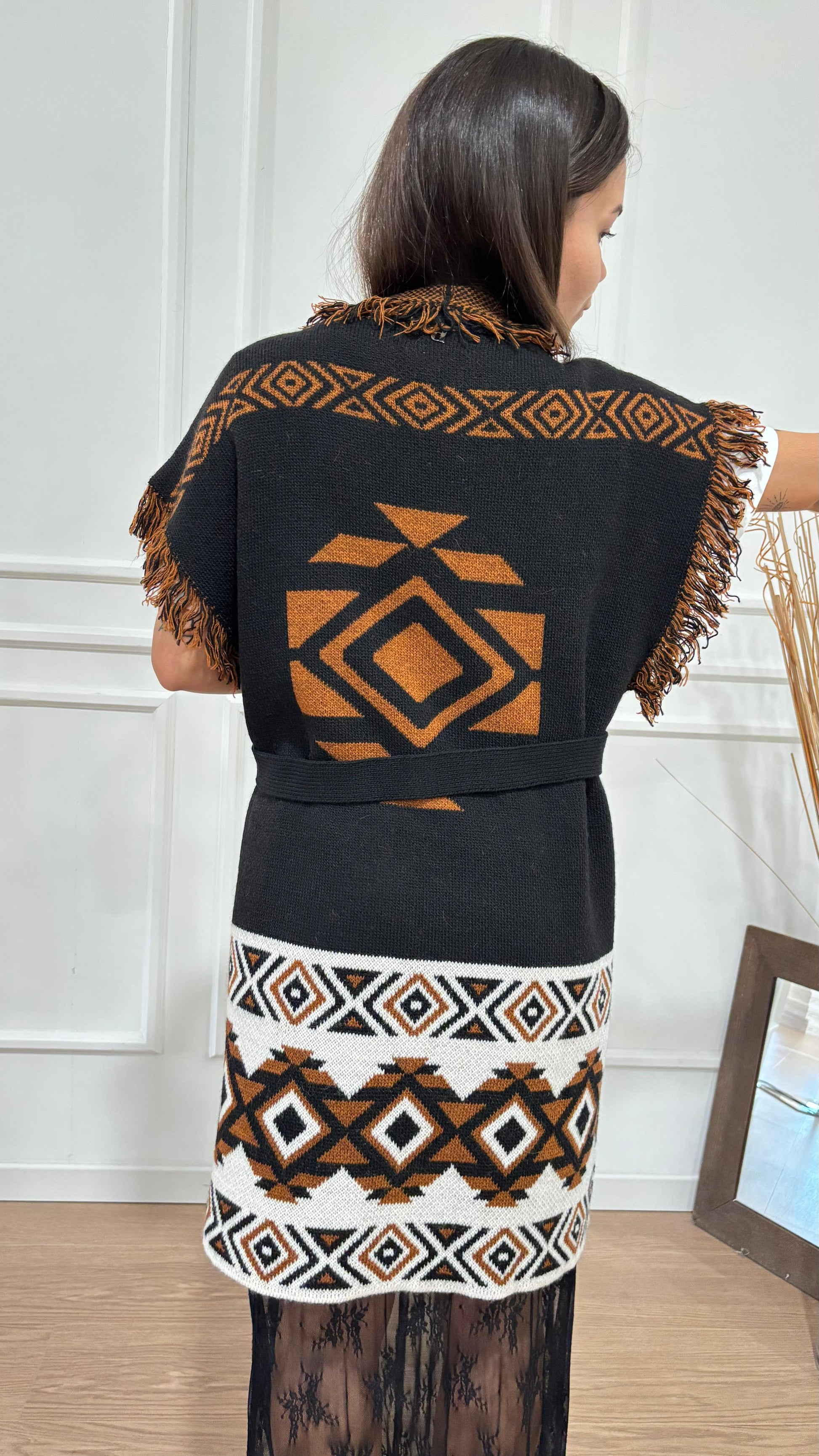 Cardigan smanicato Dixie M566Y189 morbido con stampa vivace con cintura in vita.