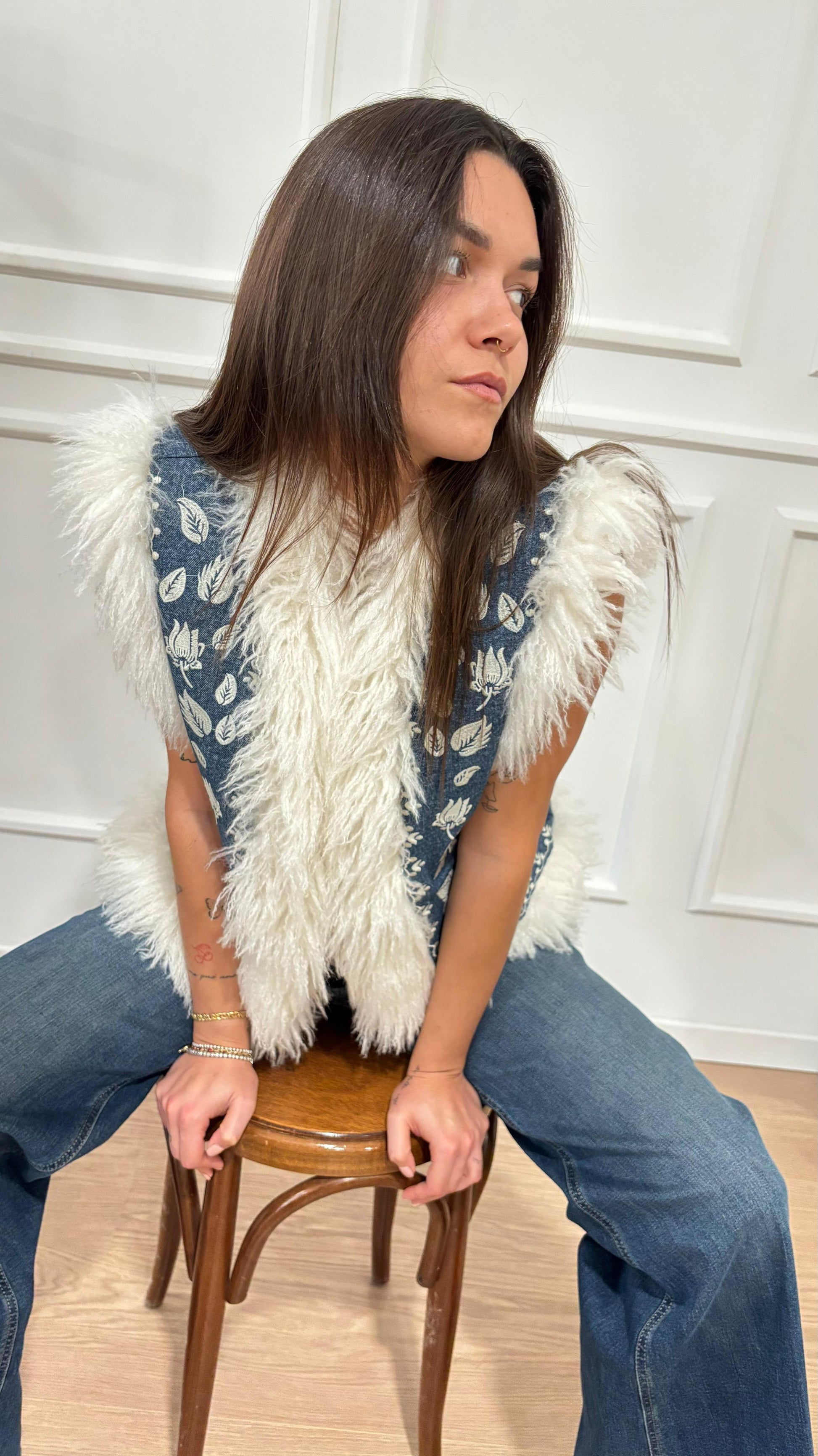 Gilet ricamato con bordi in pelliccia Dixie L945Y030X