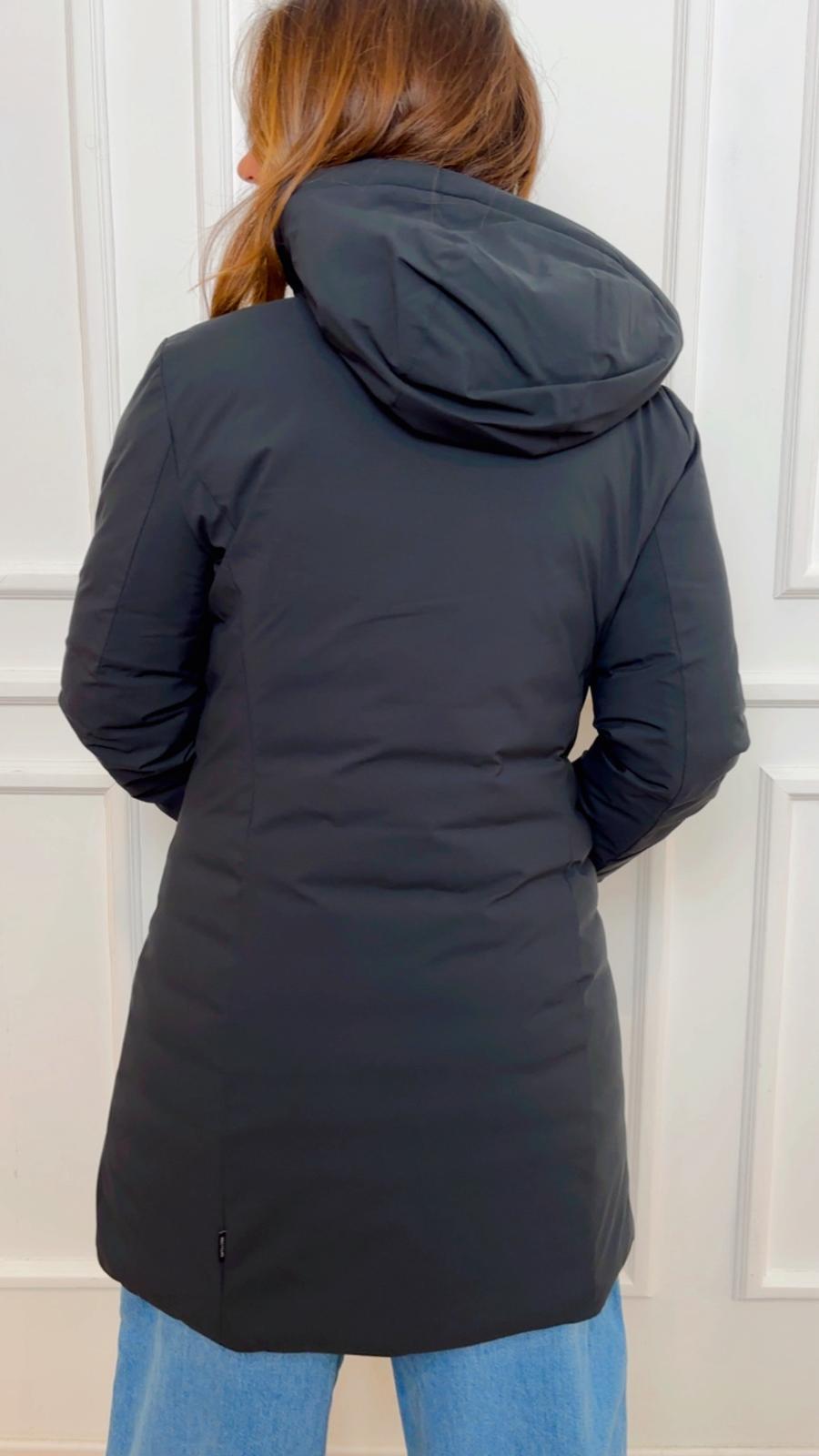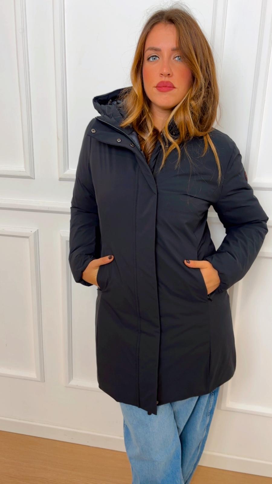 Giubbotto Matt21 Save the Duck D45430W MATT21 tiene la pioggia e il freddo con tessuti riciclati e imbottitura animal free, cappuccio fisso, water-resistant e tasche zippate, tiretti personalizzati e logo tono su tono incollato a caldo sulla manica.