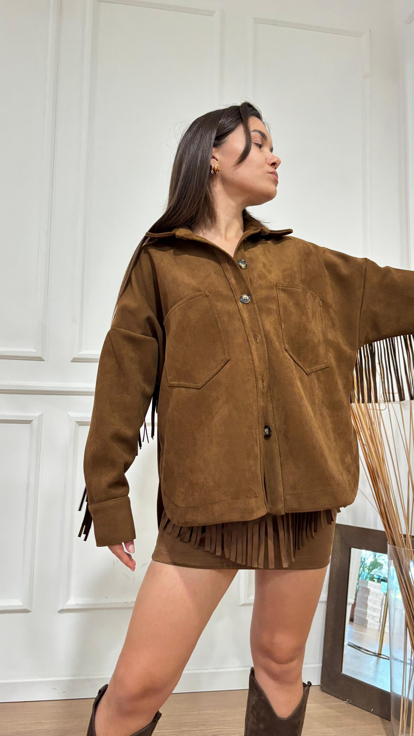 Gonna con frange Dixie G845Y040 tessuto morbido effetto suede, vita alta e frange frontali.