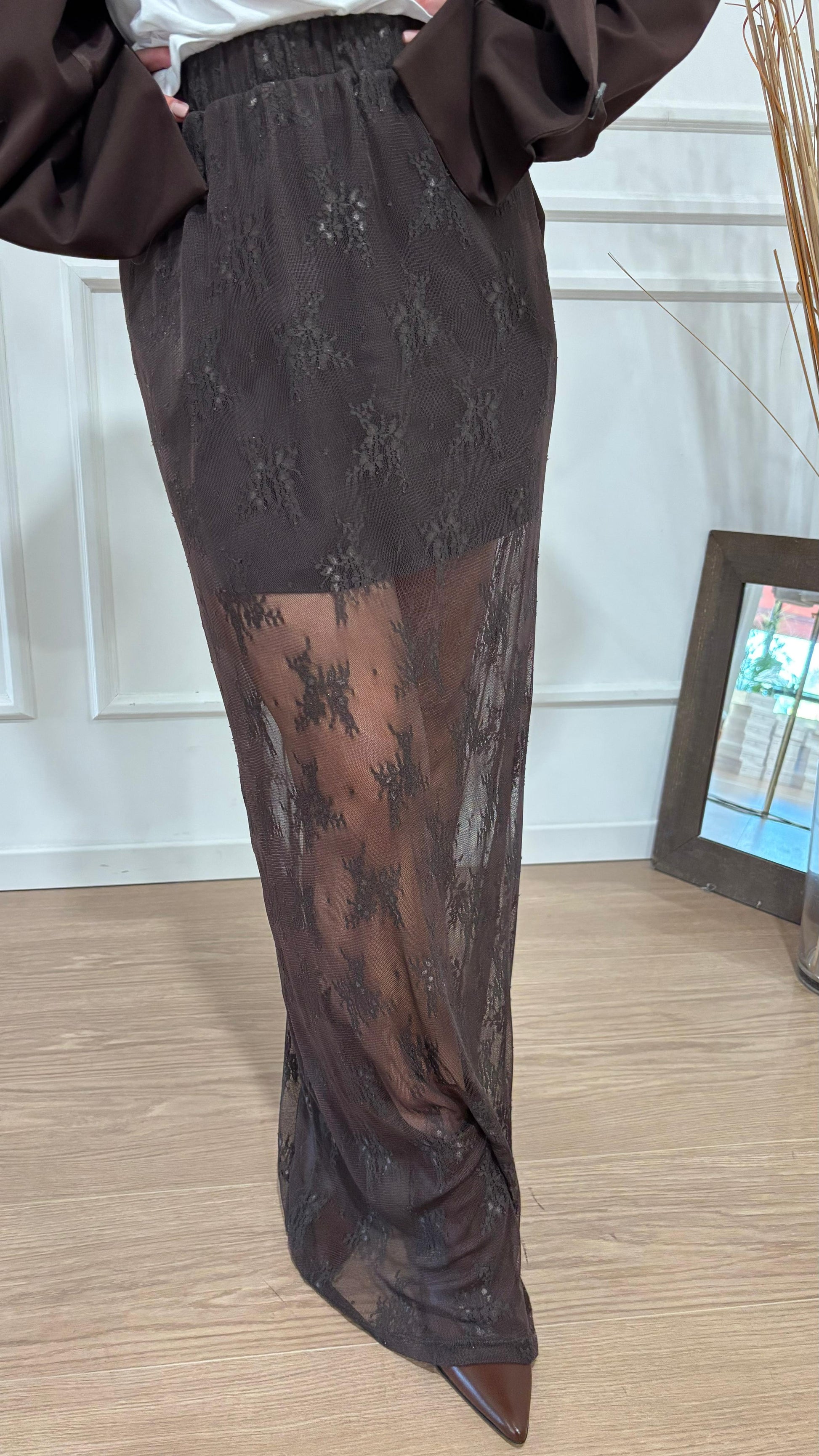 Gonna in pizzo trasparente Dixie G262Y047 moro