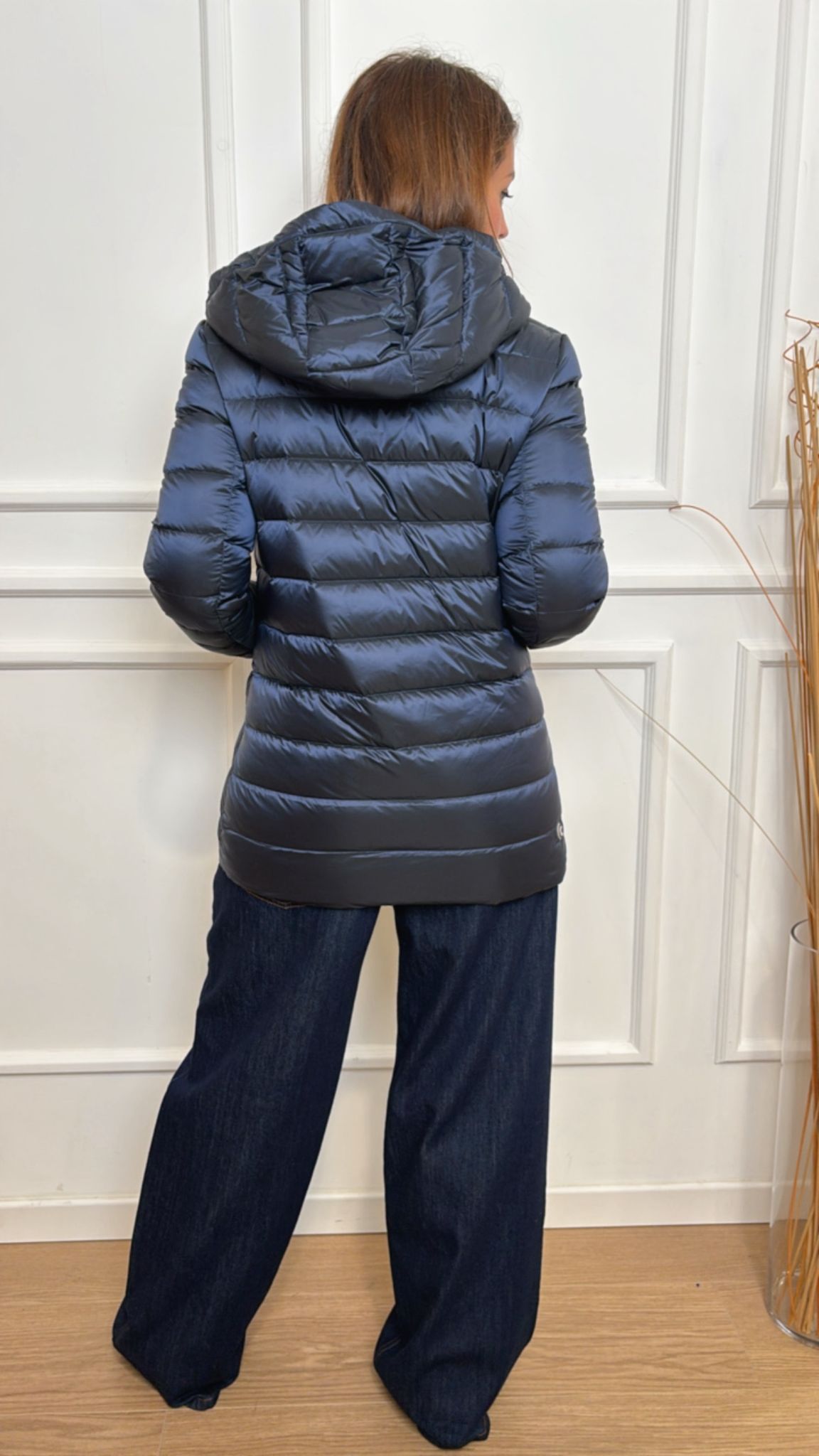 Piumino sciancrato Colmar 2226 2Y0 68 con silhouette frontale che esalta il punto vita, cappuccio con coulisse in nastro tono su tono, tasche laterali, logo Colmar Originals applicato sulla manica sinistra, patch "C" applicato sul retro.