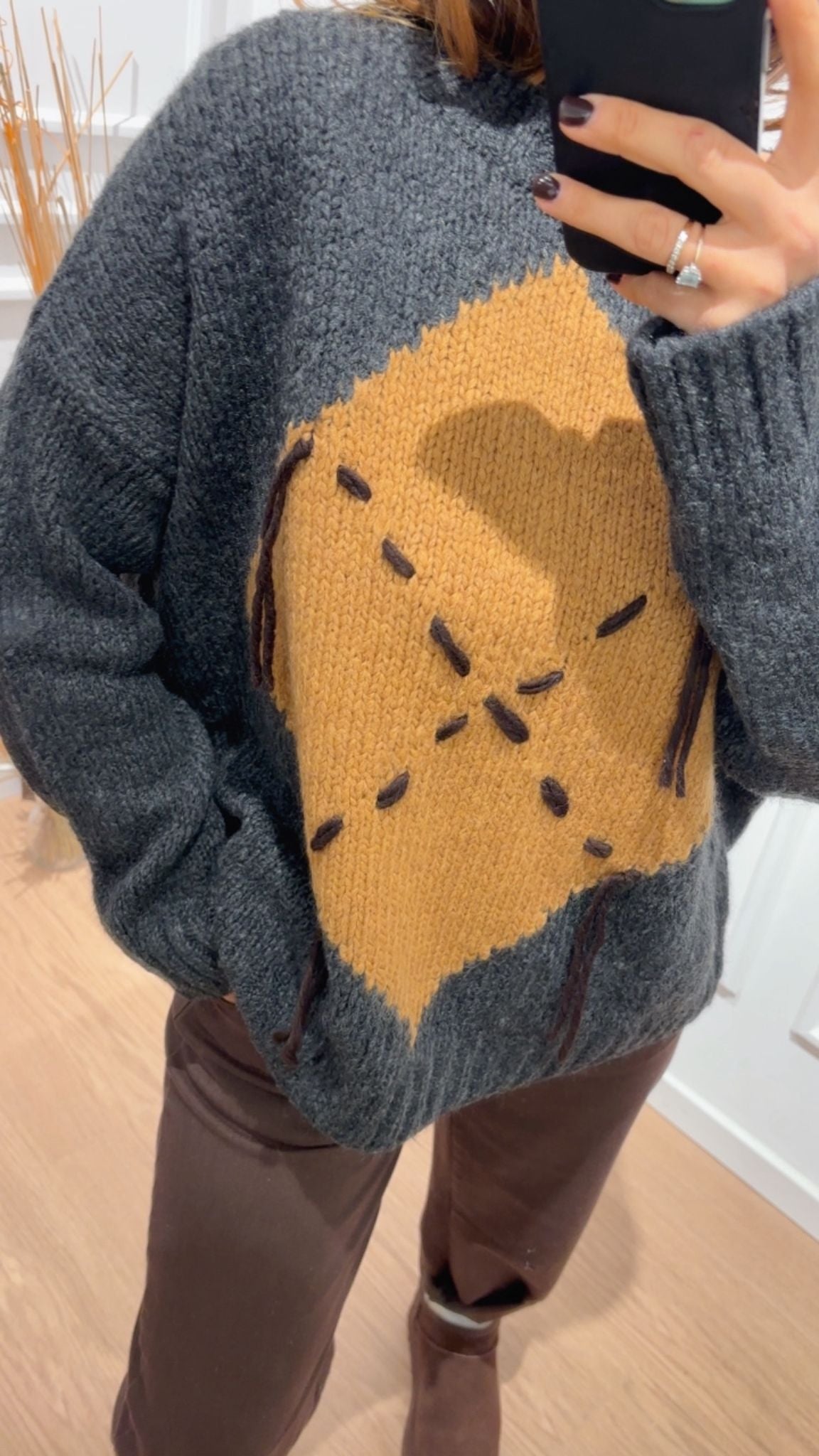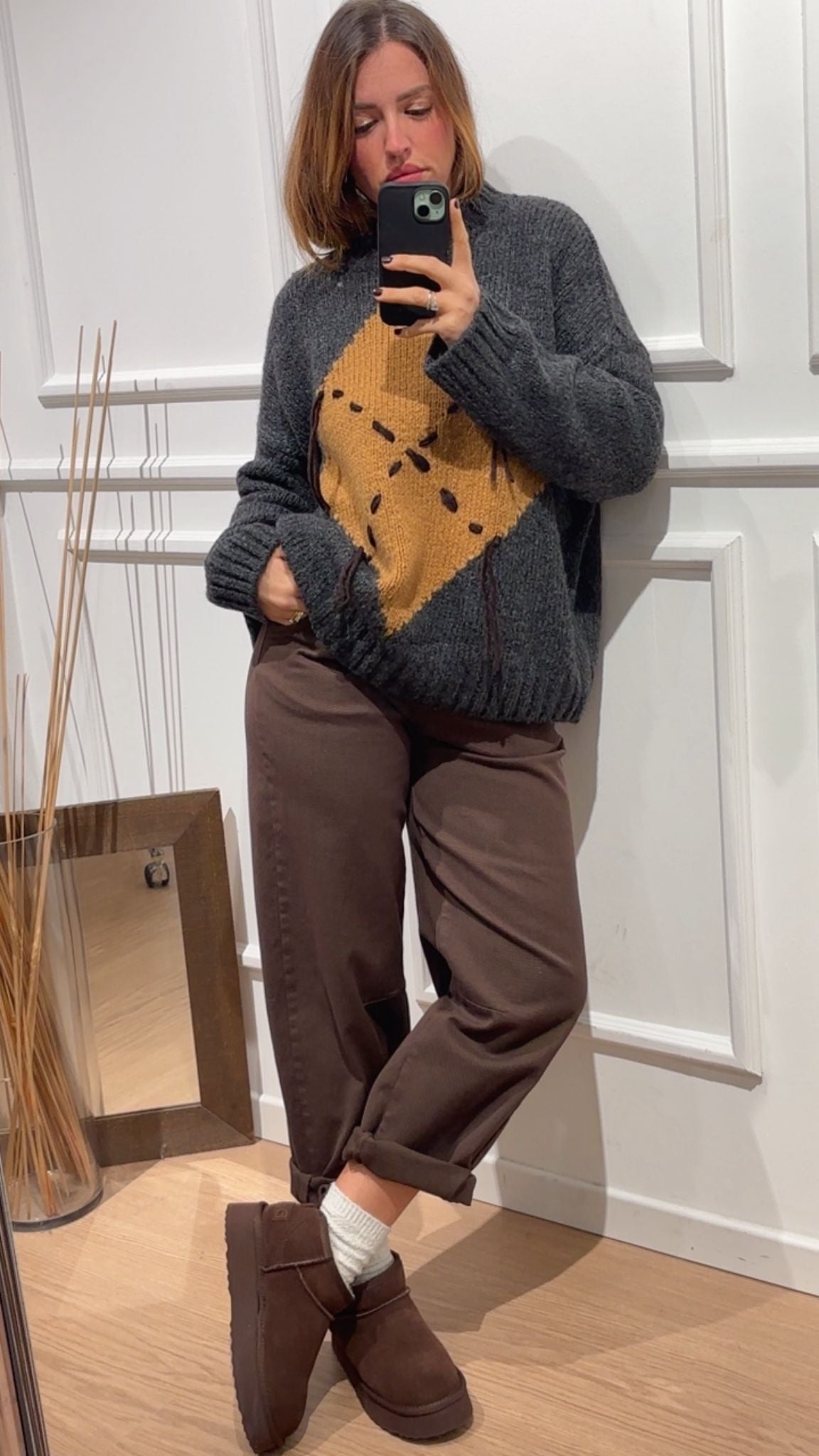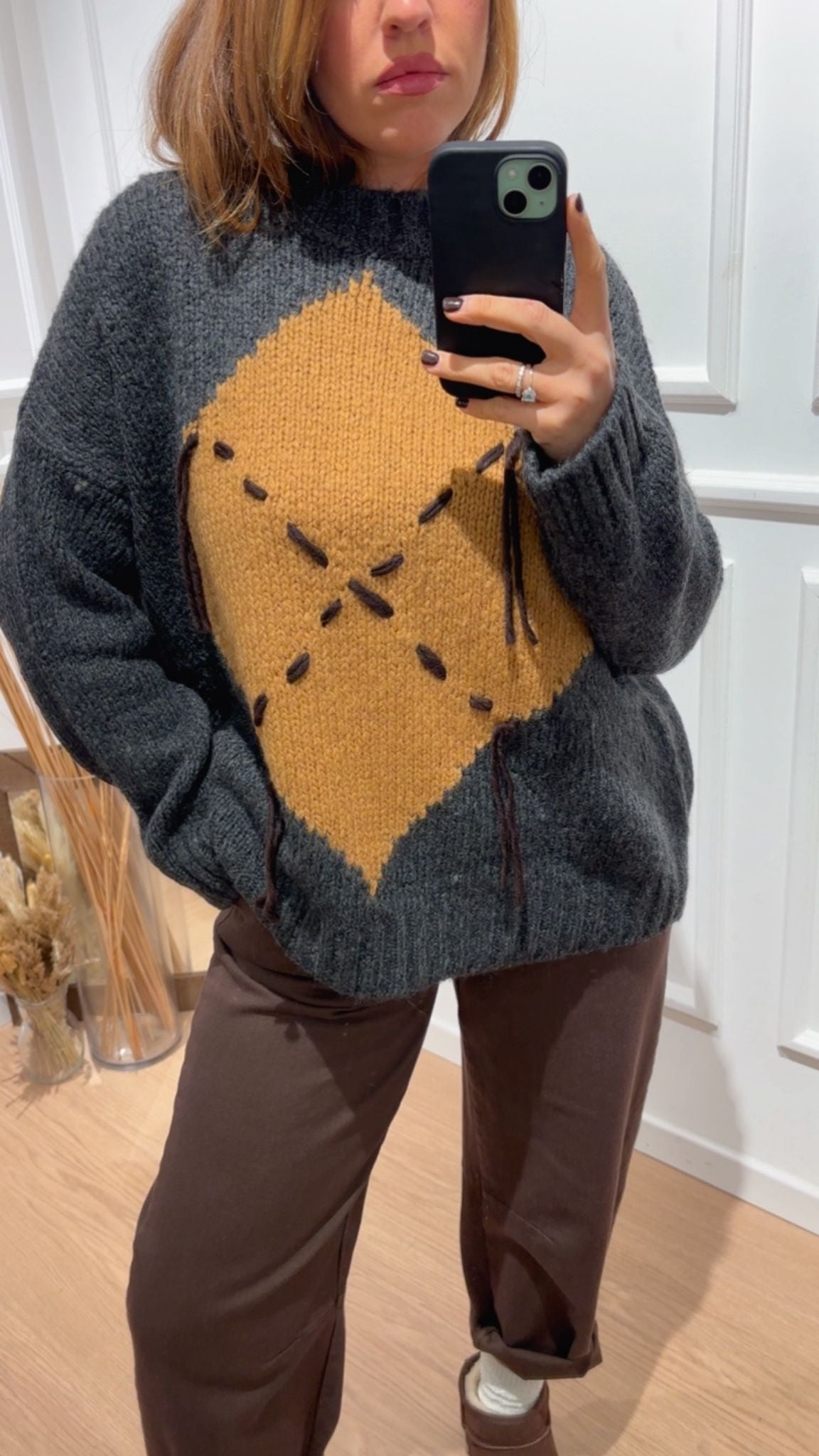Pull filo Tensione In D82000 Grigia, vestibilità over, spesso ma morbido al tatto.
