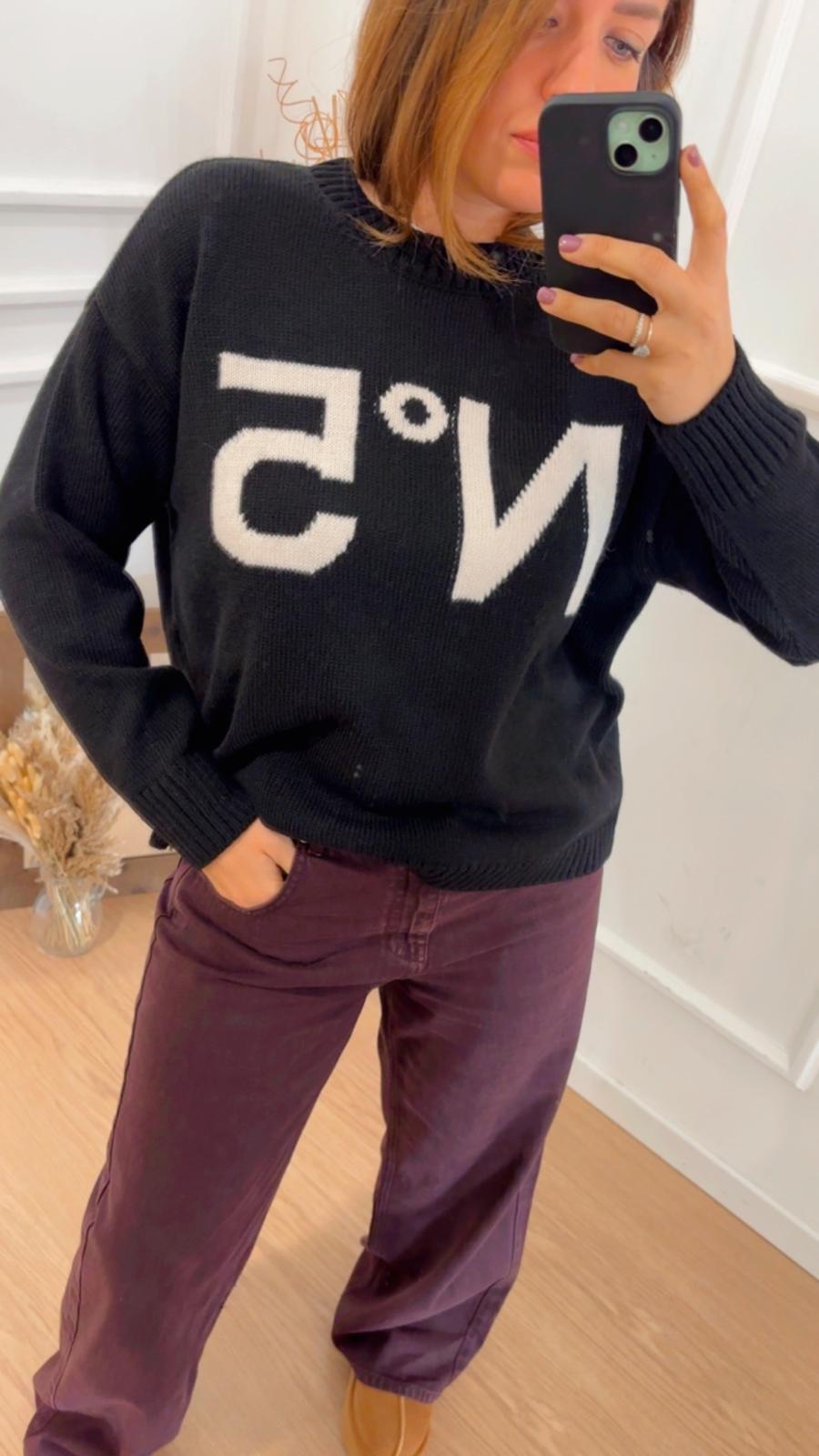 Pull N°5 Tensione In W5HMJ56A Nero, vestibilità over, collo a giro con costine.